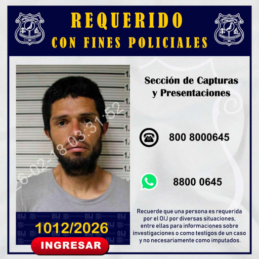 La Delegación Regional de Santa Cruz del Organismo de Investigación Judicial, requiere la colaboración de la ciudadanía para identificar a la persona que se observa en la fotografía, ya que es requerido con fines policiales. Cualquier información que pueda brindar es indispensable que se comunique al teléfono 800-8000645 del Centro de Información Confidencial.